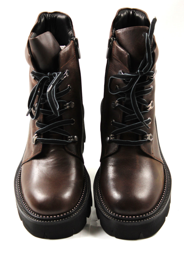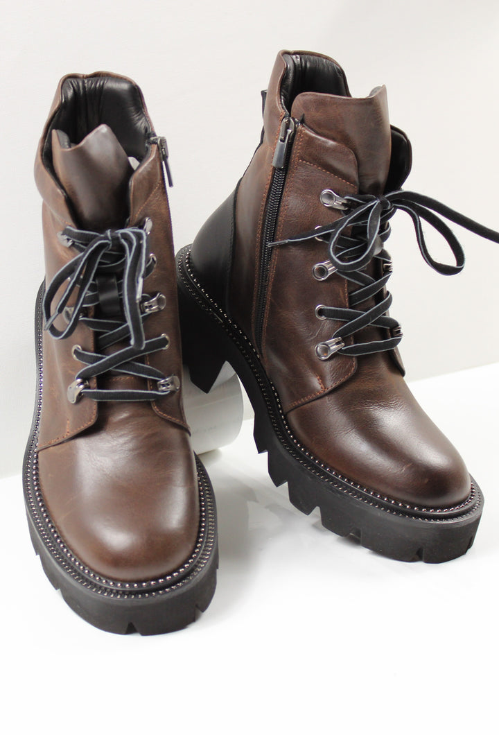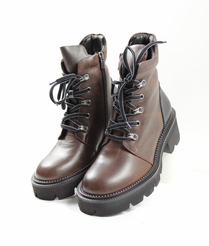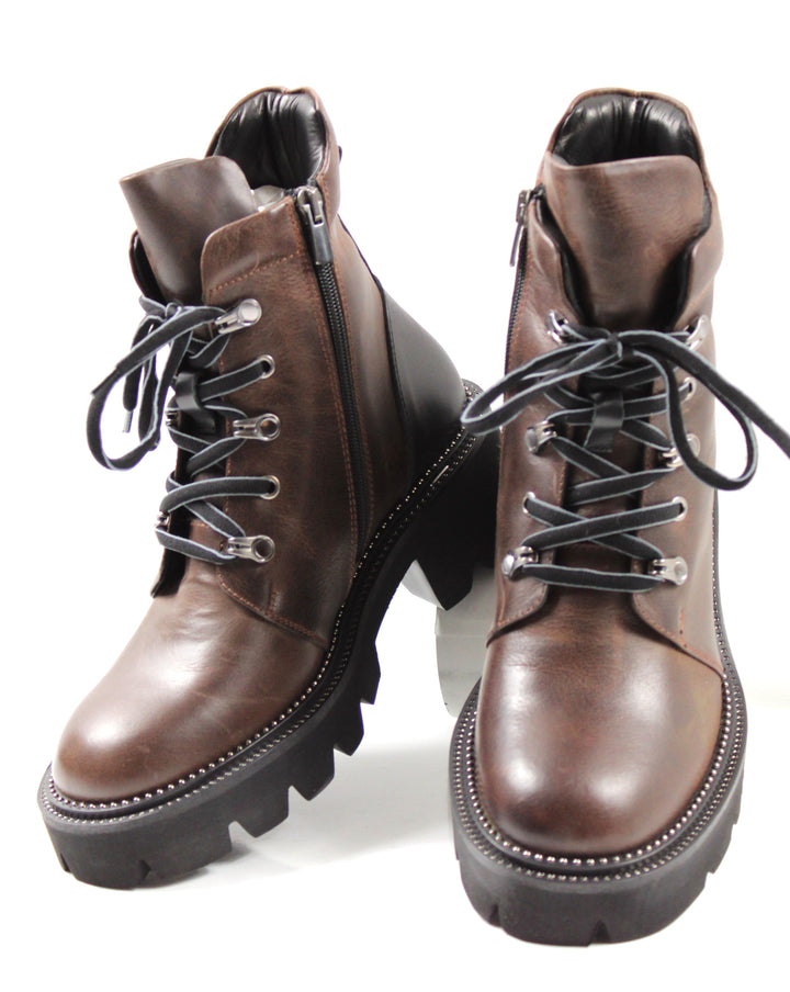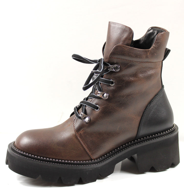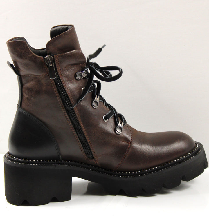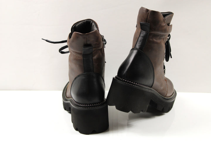 Damenstiefel Boots Schwarz/Braun – Schnürboots mit Zipper & Absatz