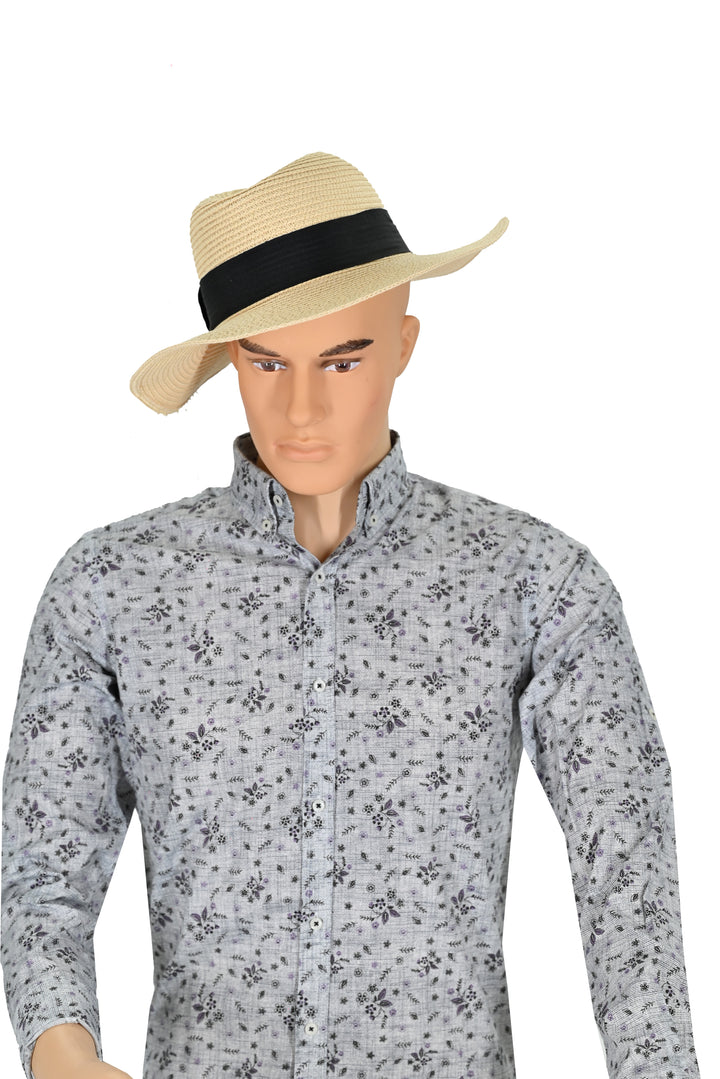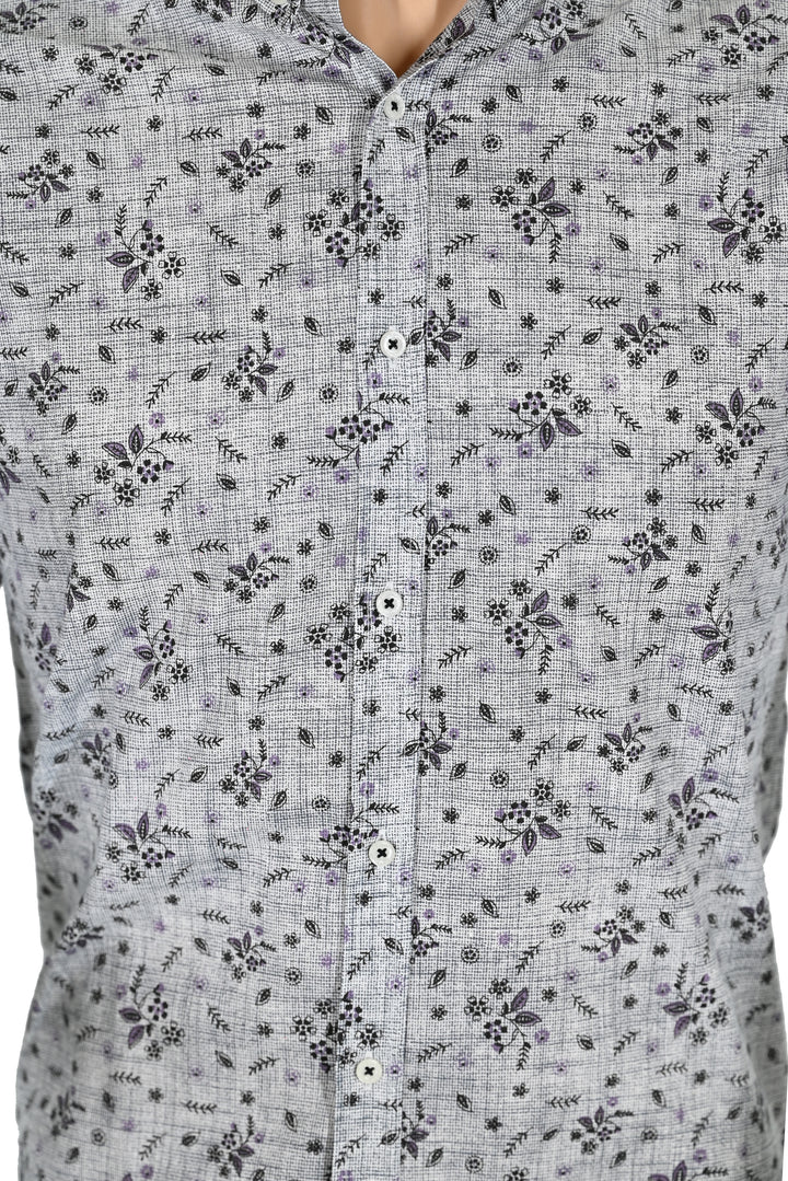 Herren Langarm Baumwollhemd in Grau mit Blumenmuster – Stilvoll & Bequem